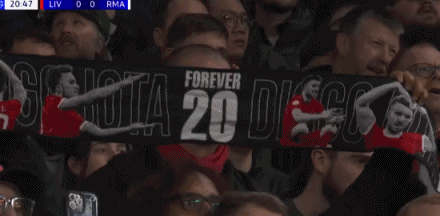 第20分钟,第20分钟!球迷挂出横幅缅怀迪奥戈-若塔