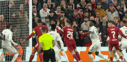 第61分钟,索博开出任意球,麦卡利斯特头球破门,利物浦1-0领先皇马!